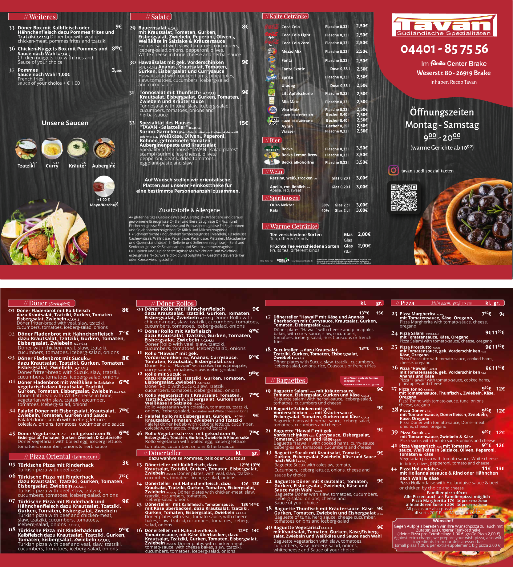 Tavan Restaurant Karte